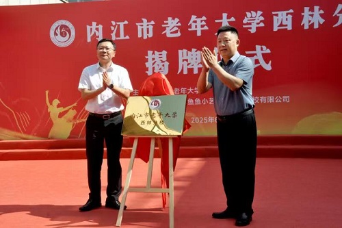 两位领导共同见证内江市老年大学西林分校的揭牌仪式