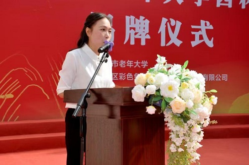 随后,内江投资控股集团公司党委书记、董事长李杜在揭牌仪式上致辞,他说,内投集团公司始终将履行社会责任、增进民生福祉视为己任。近年来,积极应对人口老龄化、大力发展老年教育事业,让每一位老年朋友都能享有“老有所学、老有所乐、老有所为”的精彩人生。他最后说,西林分校的揭牌,是起点、更是承诺。内投集团公司将一如既往地支持我市老年教育事业发展:我们将持续加大投入,优化分校硬件设施,营造安全、温馨、充满活力的学习环境;我们将全力支持合作深化,推动彩色鱼教育与市老年大学在课程研发、师资共享、活动组织等方面深度融合,不断拓展服务内涵,提升教学质量,让“夕阳红”在甜城大地绽放更加绚丽的光彩。