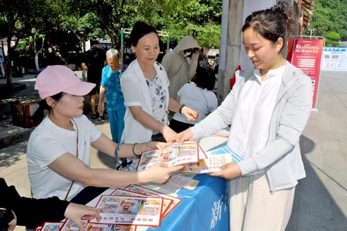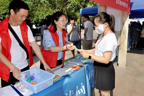 区安委会成员单位工作人员向老百姓发放应急安全手册
