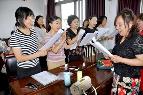 罗世秀同学(右一)领唱《化蝶》