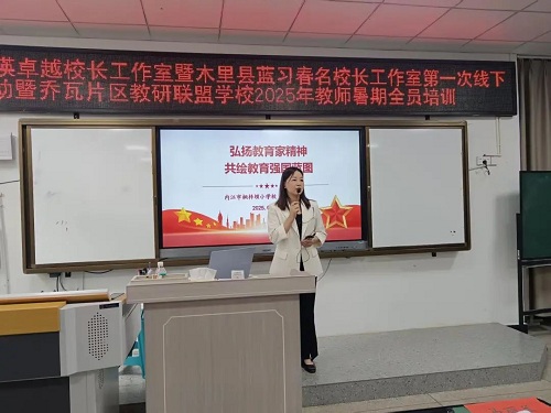 开班仪式上,领衔学校--木里县乔瓦镇第二小学蓝习春校长发表了热情洋溢的致辞。蓝习春对各位嘉宾、领导及片区联盟学校教师的到来表示诚挚欢迎,并强调了本次培训活动的重要意义。四川省特级教师刘丽华代表工作室讲话,她分享了工作室的建设理念与发展愿景,表达了对本次培训助力教师成长的期待。